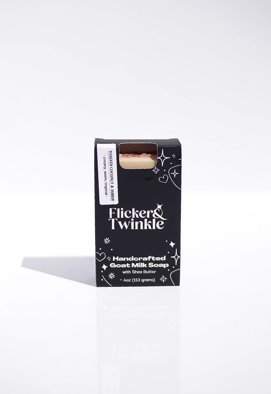 We make it in our signature cold-processed goat milk recipe, so the natural glycerin stays put for a creamy, cushiony lather that rinses clean. Gentle for daily use, luxe for gifting, and boxed to match your Flicker & Twinkle line.